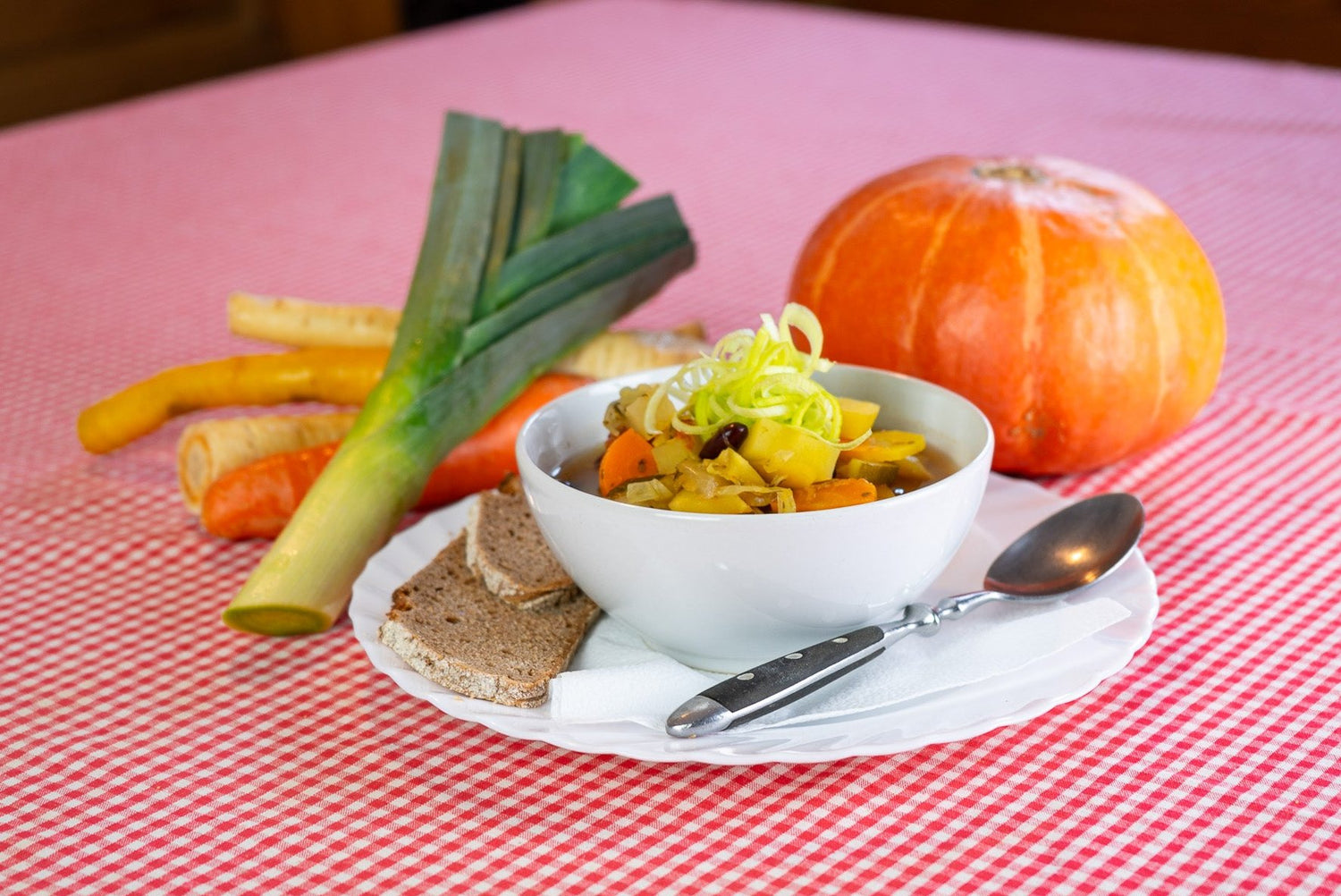 Gemüse von seiner herrlichsten Seite, unser heißer Klassiker, nicht nur an kühlen Tagen. Mit Bauernbrot, auf Wunsch auch mit Bergkäse. Geheimtipp: Mit einem fein geschnittenen Hauswürstel drin ist es zwar nicht mehr ganz so vegetarisch, dafür noch einen Tick herzerwärmender.